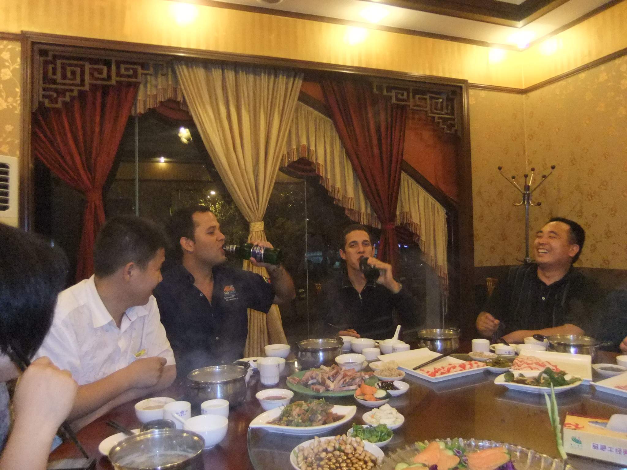 ??? 實驗期間,物料篩分效果良好、篩分質量穩定,得到了來自大洋彼岸的朋友的稱贊。晚上我們公司的工作人員和委內瑞拉的朋友暢飲狂歡,外國朋友學會了中國的“干杯”,而我們也知道了“沙路”(下圖,委內瑞拉客戶此行我公司很滿意,迫不及待的“沙路”)